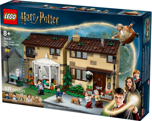 Magiczny zestaw świetnie sprawdzi się jako prezent świąteczny lub urodzinowy dla chłopców, dziewczynek i wszystkich fanów w wieku od ośmiu lat. Zawiera pięć minifigurek LEGO Harry Potter i figurkę psa Majchera. Ponadto w zestawie jest figurka nadmuchanej ciotki Marge, aby można było odtworzyć zabawną scenę, w której Harry rzuca zaklęcie, aby nadmuchać ją jak balon, a także dodatkowy model ze znakiem „Privet Drive” i latarnią.