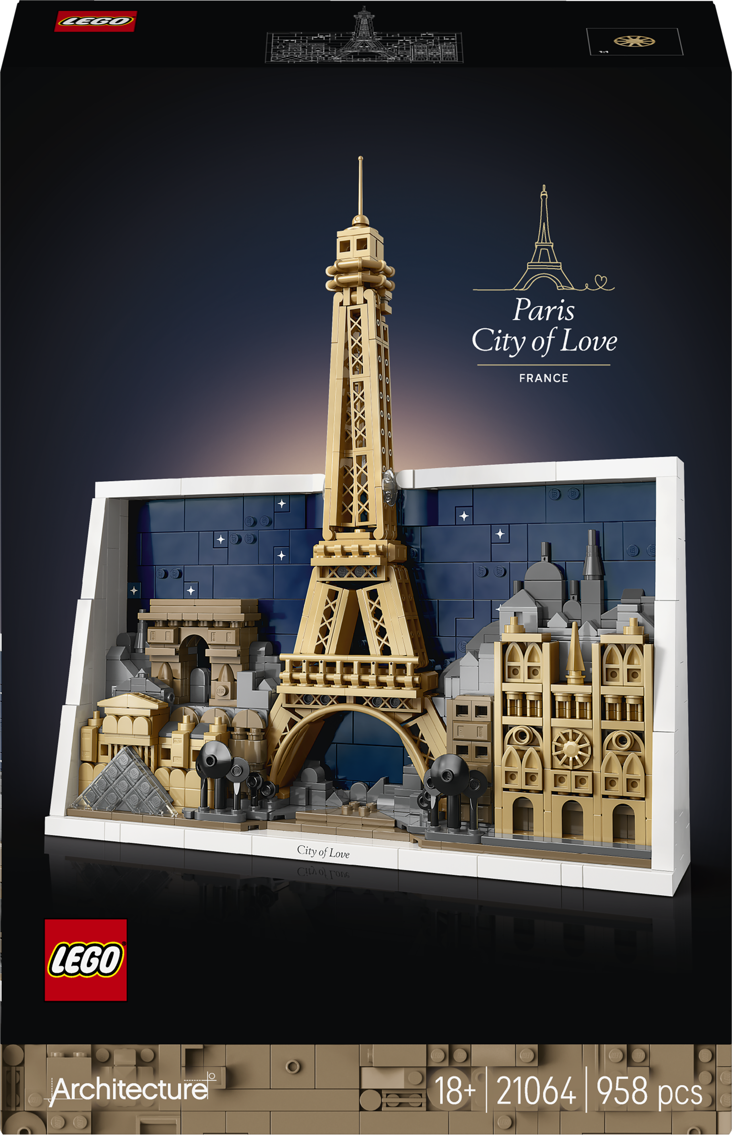 Podczas budowania podziwiaj rozgwieżdżone niebo i panoramę miasta. Odkryj szczegóły Wieży Eiffla, katedry Notre-Dame, Łuku Triumfalnego i Luwru. Dopełnij całości, dodając ozdobny klocek z napisem „City of Love” („Miasto miłości”) i ramkę z klocków, a następnie powieś model kolekcjonerski na ścianie lub postaw na półce w domu lub biurze.