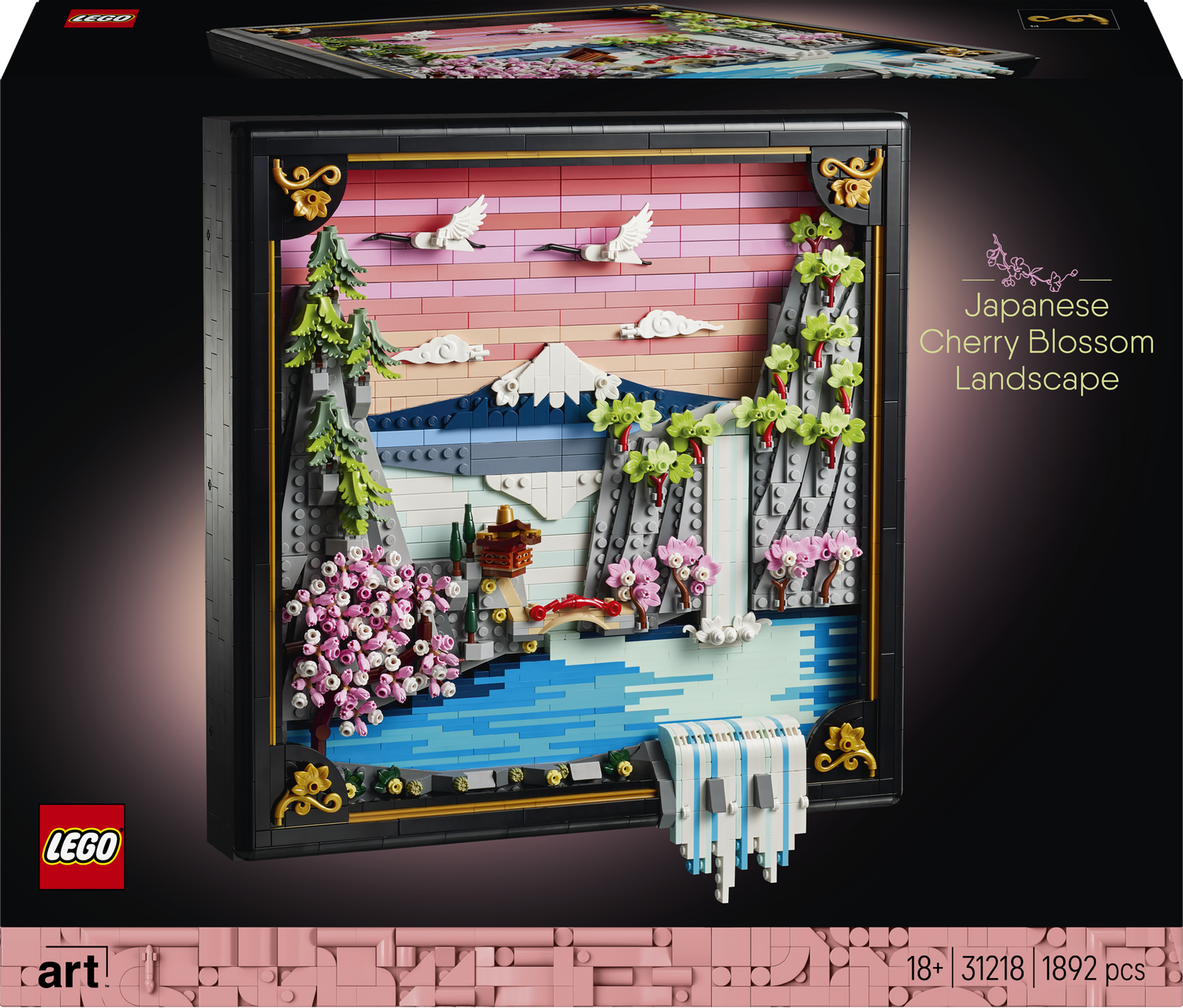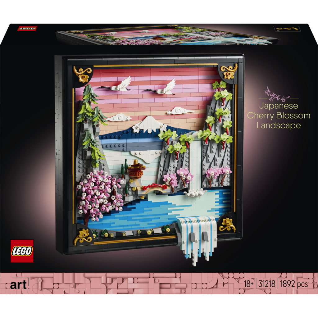 Wprowadź do swojego domu odrobinę koloru i natury z zestawem konstrukcyjnym dla dorosłych LEGO Art Japoński krajobraz z kwitnącą wiśnią (31218). Ta trójwymiarowa dekoracja ścienna jest inspirowana urokiem japońskiej wiosny i sztuką ukiyo-e. Przedstawia tradycyjny, japoński krajobraz: górę Fuji, herbaciarnię, most, wodospad, japońskie żurawie oraz kwiaty wiśni, klon „sango-kku” i japońskie sosny parasolowate.
