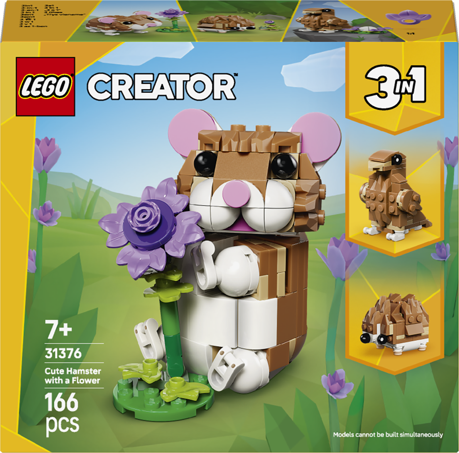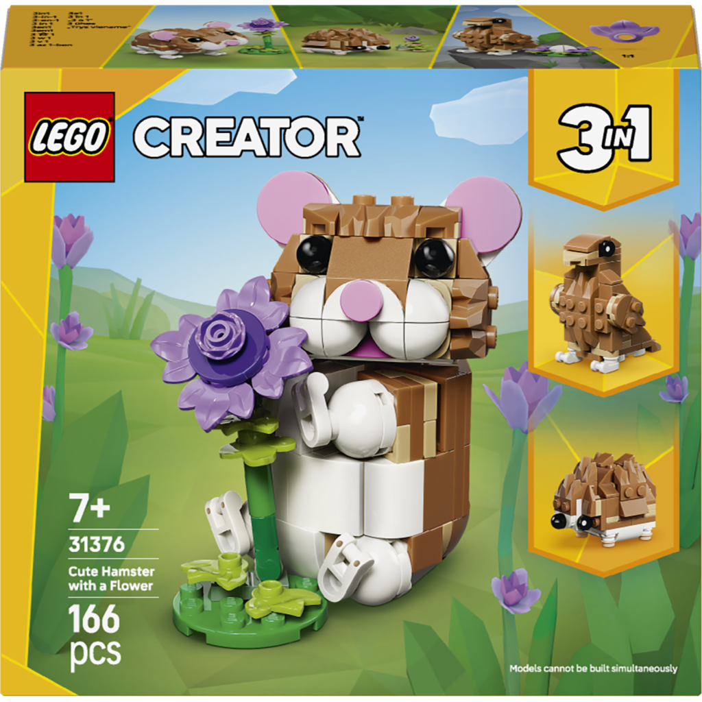 Zestaw klocków dla dzieci LEGO Creator 3 w 1 Uroczy chomik z kwiatkiem (31376) to zabawka konstrukcyjna dla dziewczynki i chłopca w wieku od 7 lat, która pozwoli odgrywać ciekawe historie ze zwierzętami. Ta urocza zabawka dla dziecka oferuje trzy różne opcje budowania przy użyciu tego samego zestawu klocków.