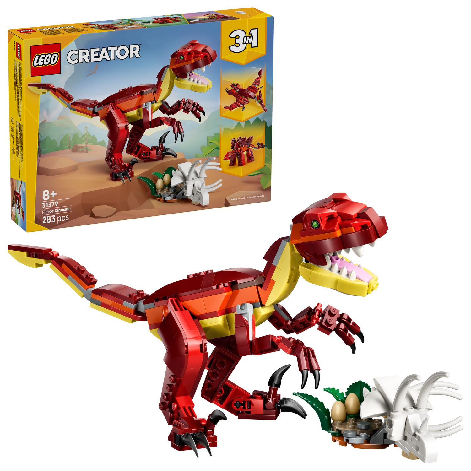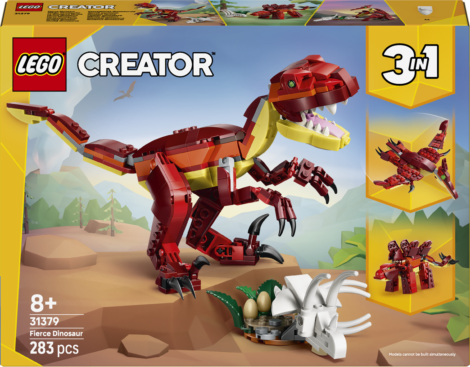 Zestaw klocków dla dzieci LEGO Creator 3 w 1 Groźny dinozaur (31379) zapewnia fanom kreatywnego budowania wszystko, czego potrzebują, aby cieszyć się prehistorycznymi przygodami. Ta zabawka konstrukcyjna dla chłopca i dziewczynki w wieku od 8 lat oferuje trzy różne opcje budowania dinozaurów LEGO przy użyciu tego samego zestawu klocków.