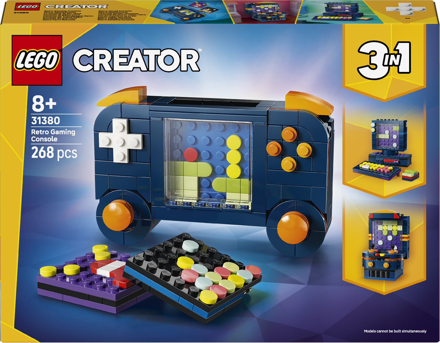 Zestaw konstrukcyjny LEGO Creator 3 w 1 Konsola do gry retro (31380) zapewnia dzieciom mnóstwo frajdy z budowania, zabawy i eksponowania modeli. Ta kreatywna zabawka dla chłopców i dziewczynek od 8 lat oferuje trzy różne opcje budowania przy użyciu tego samego zestawu klocków.