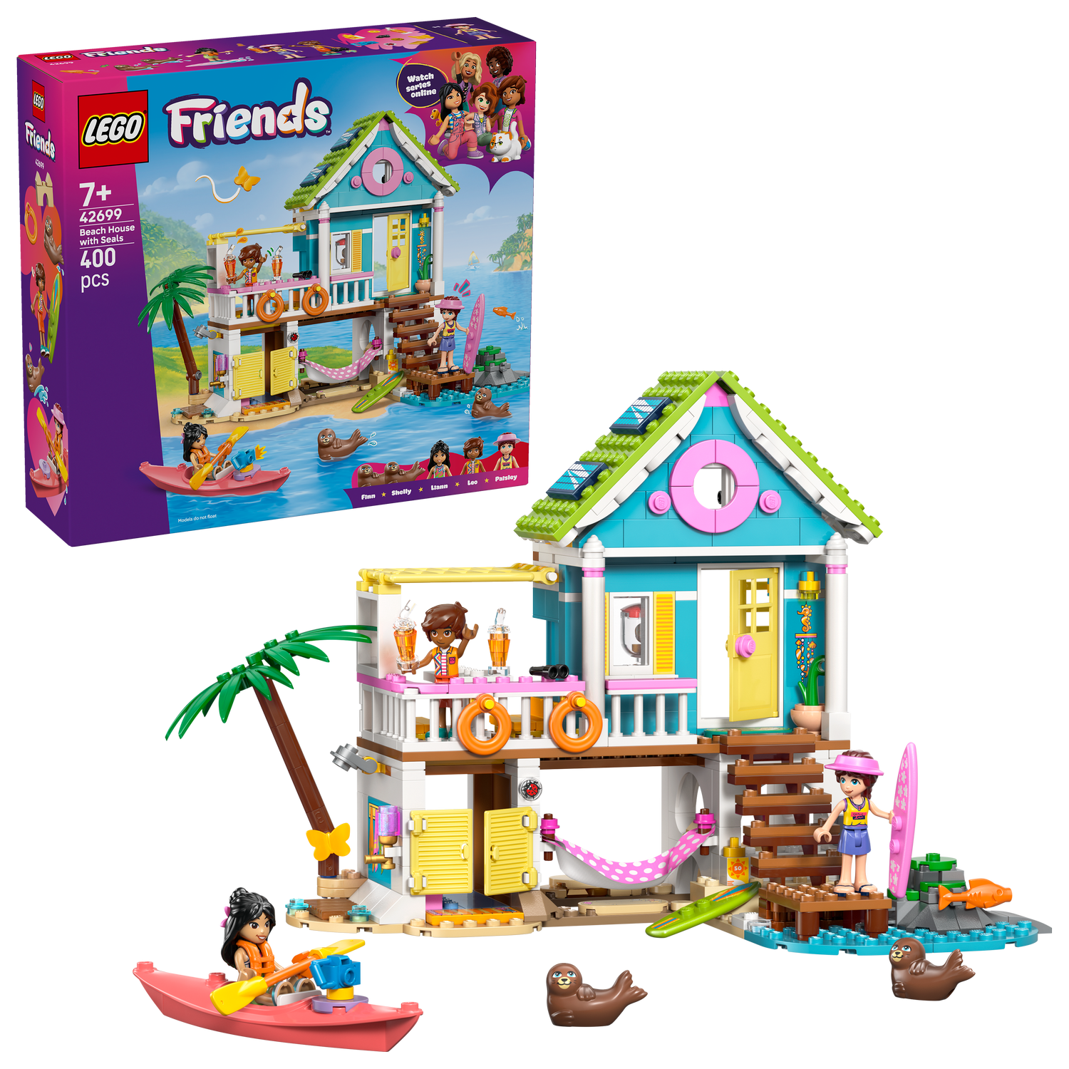 Klocki LEGO Friends Domek na plaży z fokami (42699) to kreatywna zabawka dla 7-latki i wszystkich fanów zabawy w dom. Zawiera domek LEGO do zbudowania, pełen uroczych detali. W zestawie LEGO dla 7-latki jest blender do koktajli w kuchni, sypialnia z trzema łóżkami oraz uroczy taras z kącikiem wypoczynkowym. Zabawę można kontynuować na plaży, gdzie relaksują się foki. Można tam nawet znaleźć zakopane skarby!