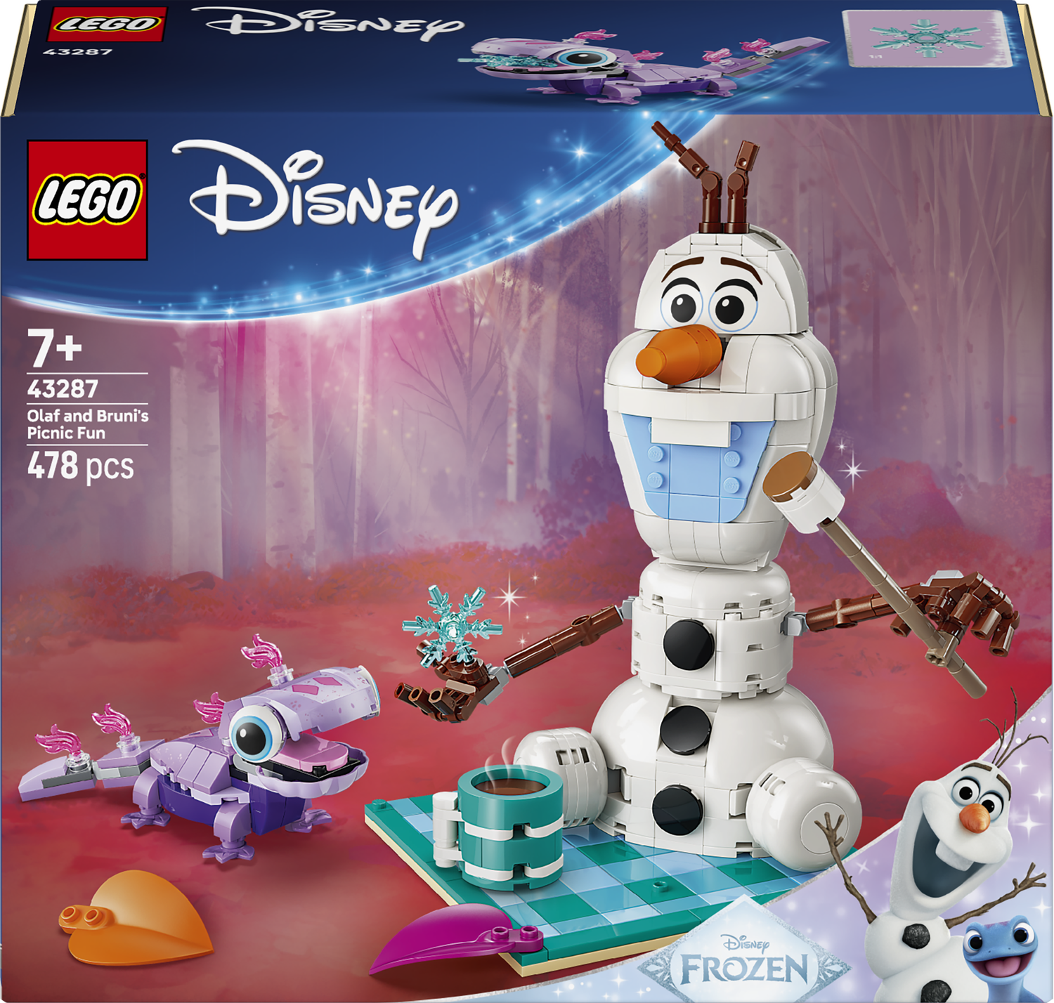 Zachwyć fanów filmu Disneya „Kraina lodu” zestawem klocków dla dzieci LEGO ǀ Disney Kraina lodu Piknik Olafa i Bruniego (43287). Ta konstrukcyjna zabawka dla dzieci pozwala tworzyć przedmioty, a następnie przenieść się do wymyślonej historii. Zestaw zawiera dwie postacie LEGO ǀ Disney: Olafa i Bruniego, kolorowy koc piknikowy, na którym mogą usiąść, oraz inne akcesoria. Po zabawie kocyk, bałwanek i salamandra mogą posłużyć jako dekoracja pokoju dziecięcego, w oczekiwaniu na kolejne przygody.