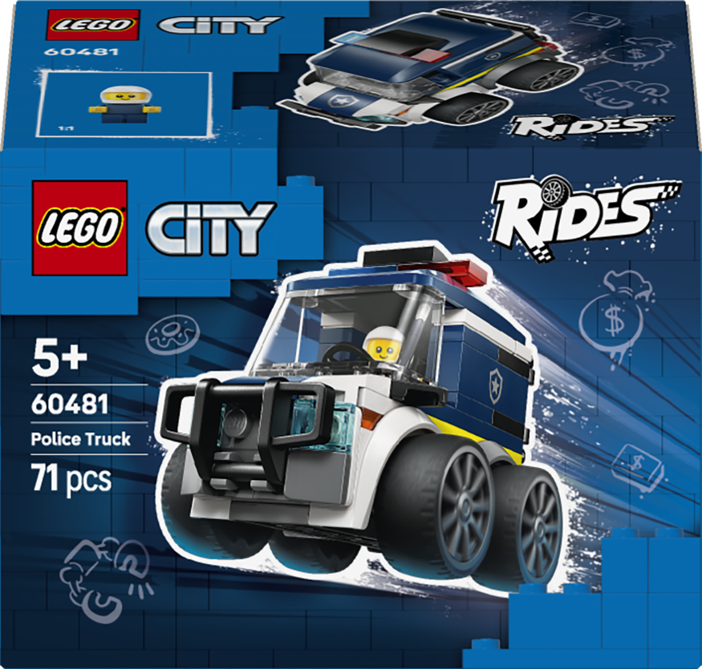 Ta zabawka dla dzieci zawiera też minifigurkę małego policjanta LEGO City, która pasuje do kabiny kierowcy i inspiruje do zabawy w odgrywanie ról. Ta łatwa w budowie zabawka dla 5-latka to świetna propozycja dla małych dzieci. Sprawdzi się jako prezent dla chłopca od 5 lat i upominek dla dziewczynki na urodziny. Dodaj go do innych zestawów LEGO City (sprzedawanych osobno), aby przeżyć jeszcze więcej przygód.