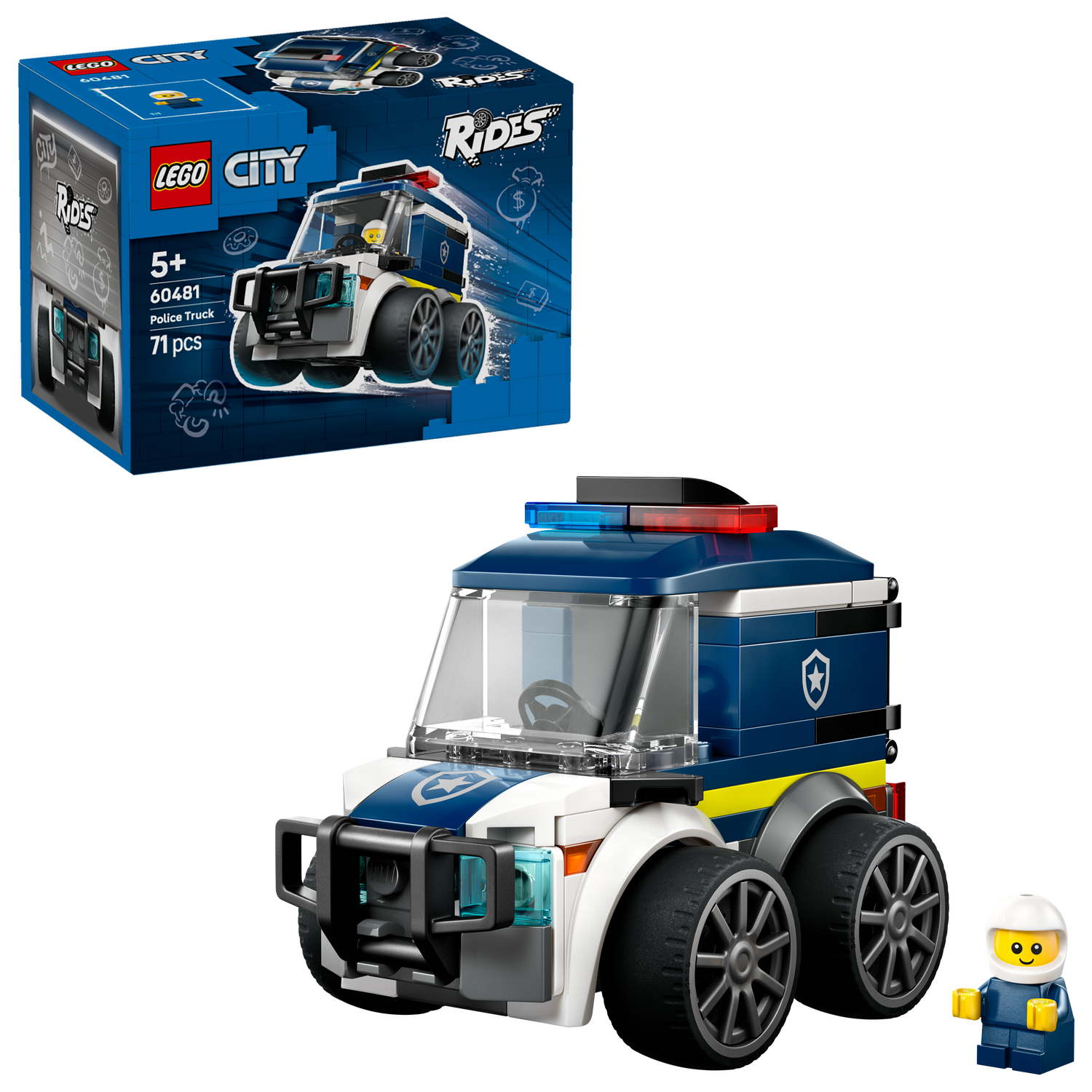 Pojazdy ratunkowe, zabawki i policyjne przygody czekają na dzieci z zestawem klocków LEGO City Pojazdy — Ciężarówka policyjna (60481)! Ta pomysłowa zabawka dla chłopca i dziewczynki w wieki od 5 lat zawiera model fajnej ciężarówki LEGO do zbudowania z felgami, niskoprofilowymi gumowymi oponami, zderzakiem, kratami więziennymi i zabawkowymi światłami awaryjnymi.