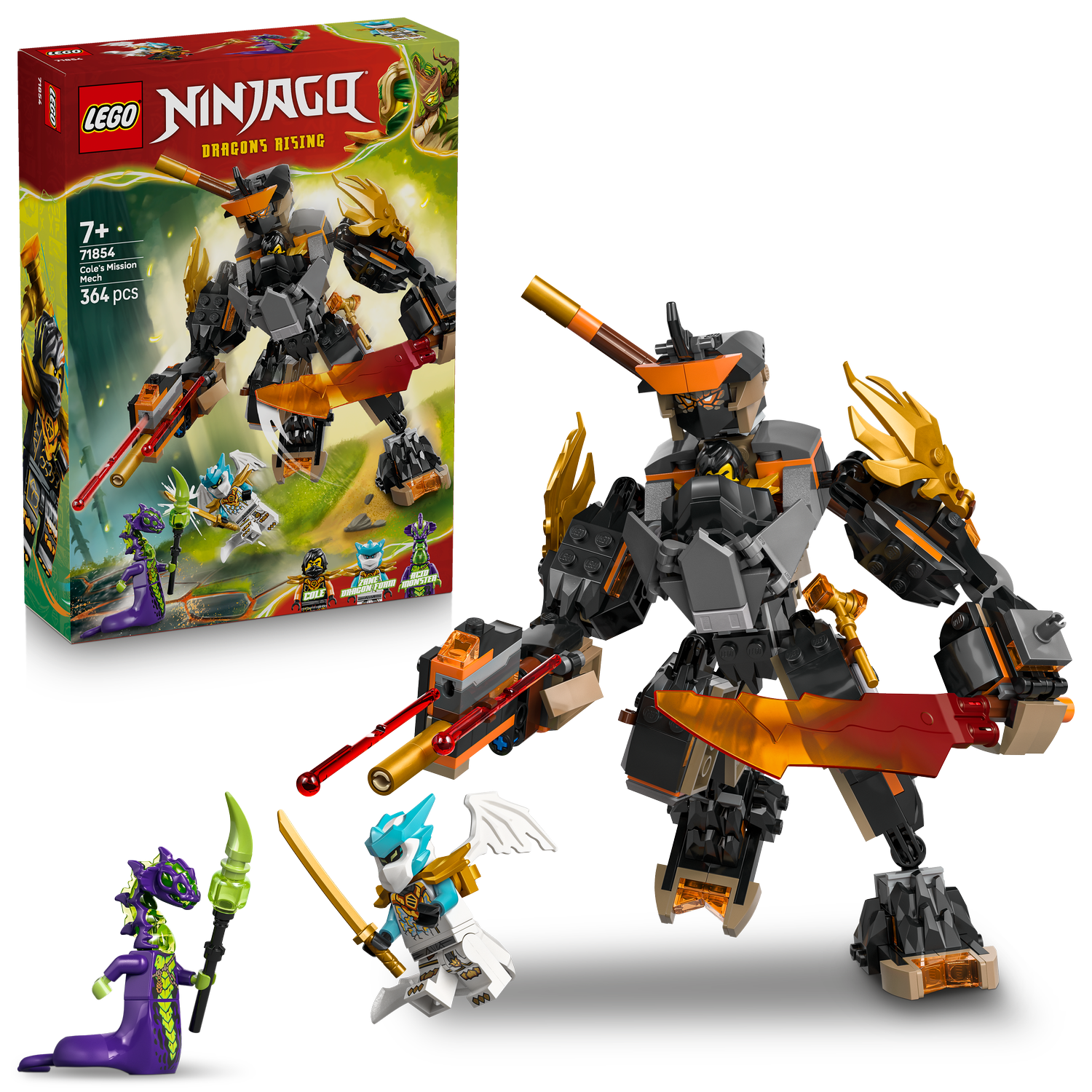 Fani ninja będą zachwyceni budowaniem zestawu klocków dla dzieci LEGO NINJAGO Mech specjalny Cole’a i Zane w smoczej zbroi (71854) i odtwarzaniem scen z 4. sezonu serialu „NINJAGO: Powstanie Smoków”. Zabawka konstrukcyjna dla 7-latka zawiera LEGO mecha z ruchomą głową, ramionami, naramiennikami, palcami, nogami i kostkami, a także kokpit, w którym można umieścić minifigurkę.