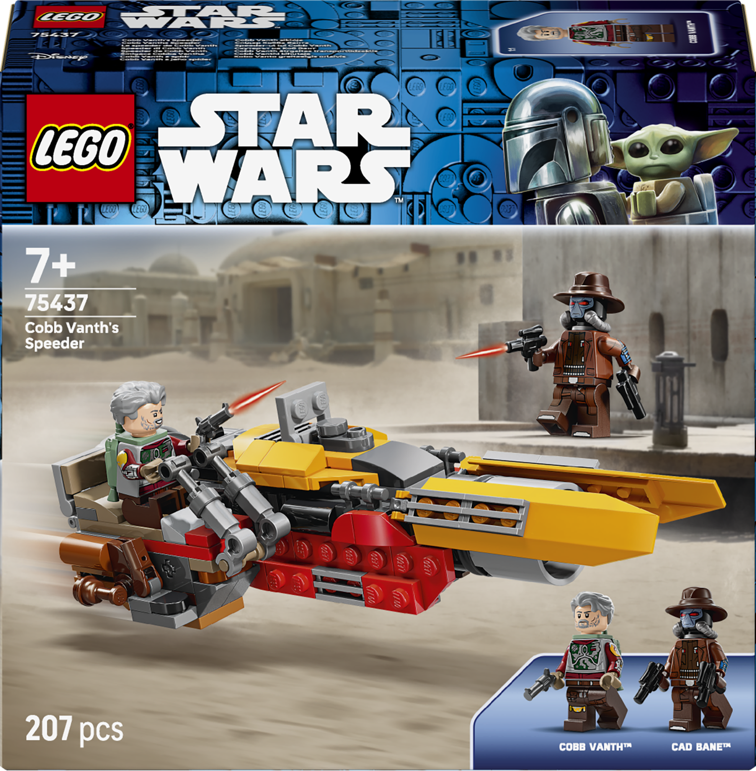 Śmigacz ma fotel dla minifigurki LEGO Cobba Vantha, uchwyt na pistolet oraz ukrytą przegródkę, w której można schować kultowe akcesoria, takie jak hełm Boby Fetta i karton mleka banthy. Dołączona minifigurka LEGO Cada Bane’a jest wyposażona w dwa blastery, a Cobb ma również plecak odrzutowy, by atakować z powietrza.