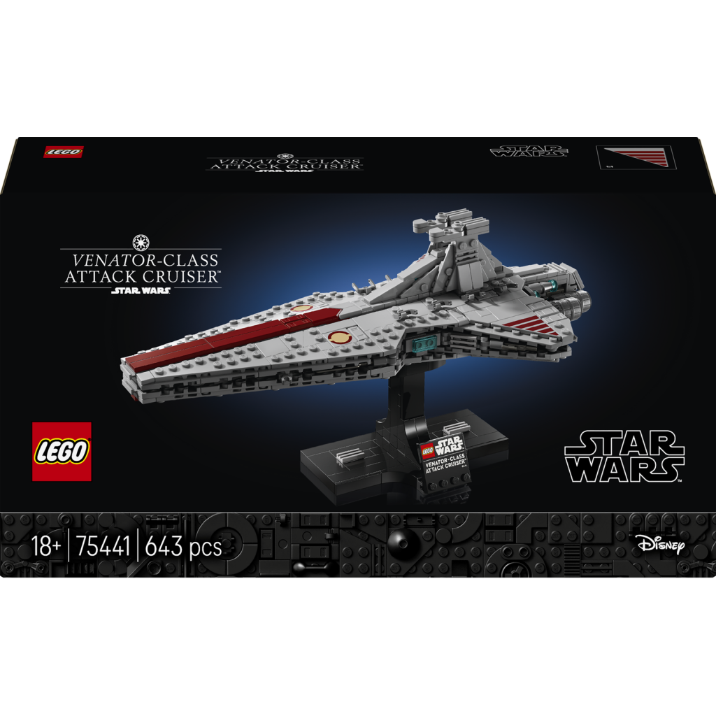 Odtwórz charakterystyczną sylwetkę i autentyczne detale jednego z wszechstronnych statków gwiezdnych we flocie Republiki Galaktycznej. Zestaw klocków dla dorosłych, LEGO Star Wars Krążownik szturmowy typu Venator (75441), pozwoli ponownie przeżyć sceny z filmu „Gwiezdne Wojny: Zemsta Sithów”. Po zbudowaniu ten szczegółowy model kolekcjonerski możesz z dumą zaprezentować na podstawce z tabliczką jako dekoracja do salonu lub ozdoba do biura.