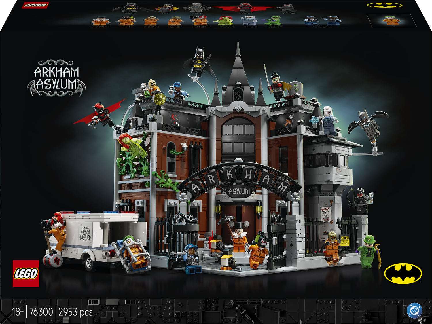 W modułowym zestawie konstrukcyjnym znajduje się 16 minifigurek LEGO: Batman, Batwoman, Batwing, Robin, Mr. Freeze, Człowiek-Zagadka, Trujący Bluszcz, Kobieta-Kot, Scarecrow, Harley Quinn, Bane, Joker, Pingwin, Killer Croc i dwóch strażników. Model dzieli się na trzy segmenty — pierwsze piętro, drugie piętro i dach — a odczepiane elementy umożliwiają dostęp do wnętrza. Dodatkowo w zestawie jest furgonetka dla więźniów, otwierane cele więzienne i 65 naklejek nawiązujących do historii Batmana. Każda sekcja jest podzielona na 24 torebki, dzięki czemu nadaje się do wykorzystania jako kalendarz adwentowy LEGO dla fanów Batmana.