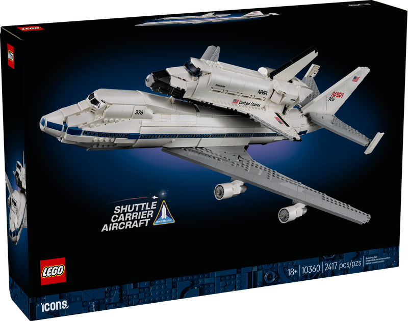 Świętuj historyczne innowacje w dziedzinie lotnictwa i kosmonautyki, budując zestaw dla dorosłych LEGO® Icons Nosiciel wahadłowców (10360). Stwórz model Boeinga™ 747™ i promu NASA Enterprise, które pomogły ukształtować erę podróży w kosmos. Odpręż się, odtwarzając każdy misterny szczegół, a następnie z dumą ustaw swoje dzieło na półce jako ozdobę.