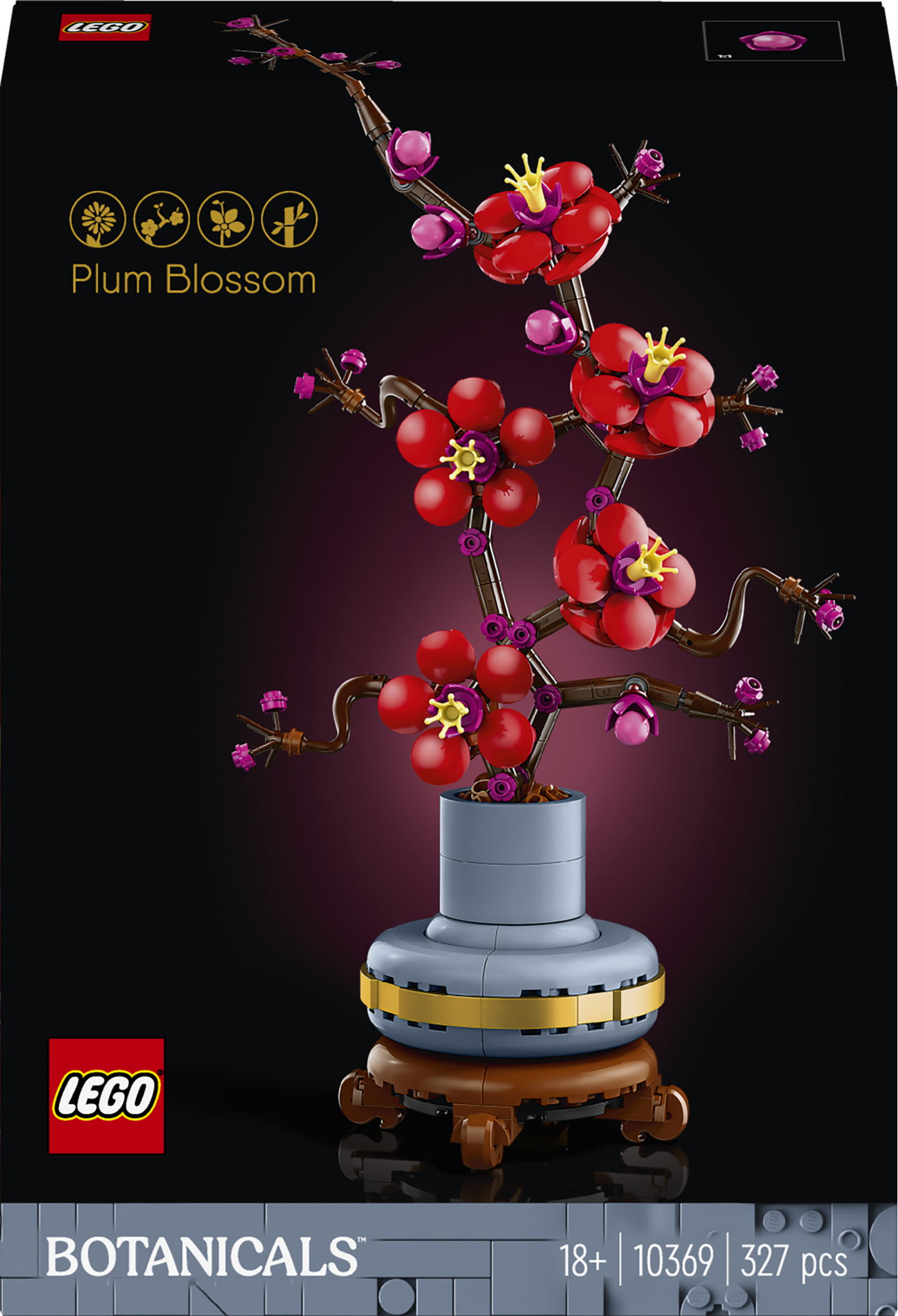 Odpręż się przy zestawie dla dorosłych LEGO® Botanicals Kwiat śliwy (10369). Śliwa to popularny motyw w sztuce tradycyjnej, zazwyczaj malowany tuszem. To także element klasycznego artystycznego motywu czterech pięknych roślin, znanego jako „czworo szlachetnych”. Rozpocznij ciekawy projekt lub podaruj ukochanej osobie ponadczasową kompozycję kwiatową jako prezent na każdą okazję.