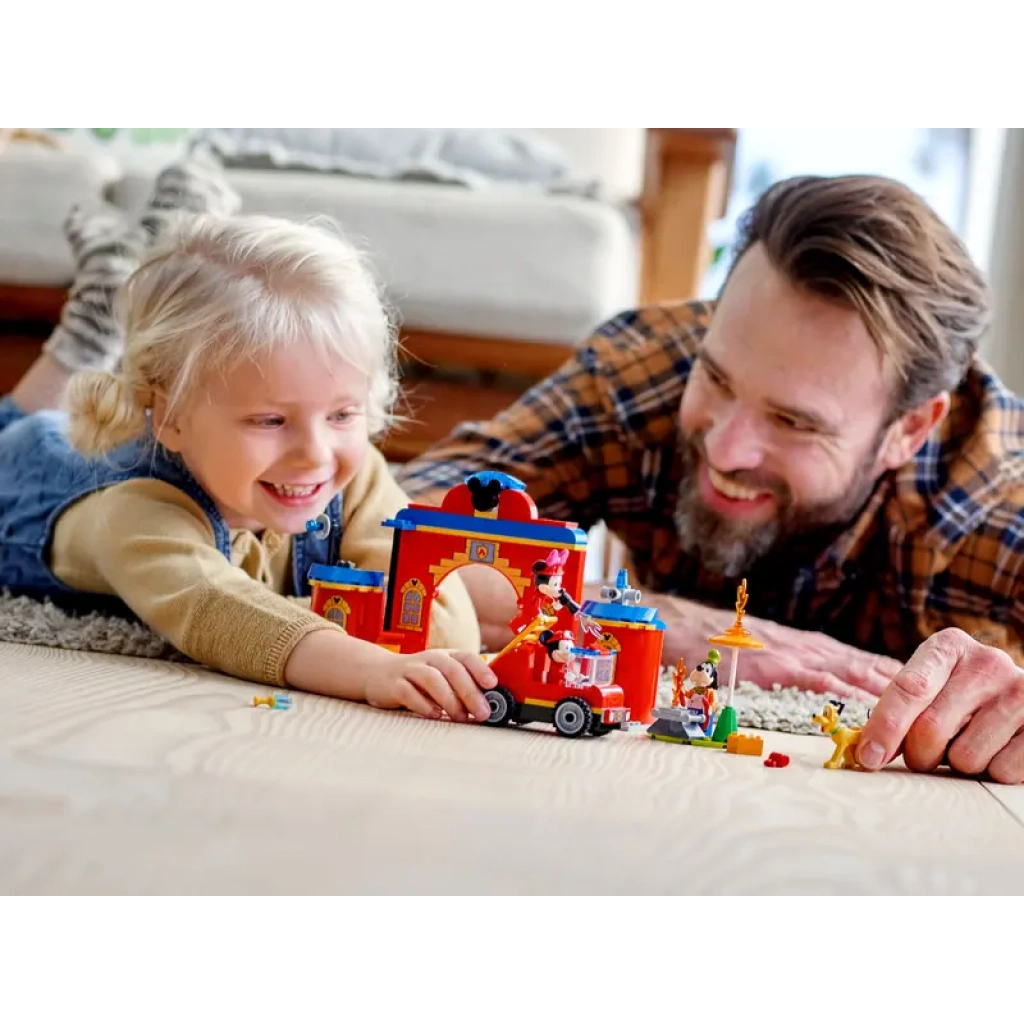 Zestaw LEGO® ǀ Disney Mickey and Friends Remiza i wóz strażacki Myszki Miki i przyjaciół (10776) pomoże maluchom rozwijać umiejętności konstrukcyjne podczas budowania i zabawy z przyjaciółmi. To szczegółowy zestaw przeznaczony dla czterolatków i starszych dzieci, którym spodoba się zabawa w strażaków z Myszką Miki Disneya i jego przyjaciółmi.