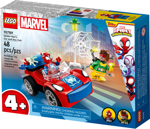 Kradzież diamentów rozpoczyna akcję i prowadzi dzieci ku niekończącym się pomysłowym przygodom. Zestaw zawiera dwie minifigurki – Spider-Mana i Doc Ocka – oraz samochód z dwoma świecącymi w ciemności pajęczynami. Specjalny klocek startowy w postaci podwozia auta zachęca dzieci do samodzielnego zbudowania samochodu Spider-Mana. Proste instrukcje są dostępne w formie kolorowej broszury z obrazkami, a aby zabawa była jeszcze lepsza i cyfrowa, aplikacja LEGO Builder zawiera intuicyjne narzędzia do powiększania i obracania, które pozwalają dzieciom wizualizować budowany przez nie model.