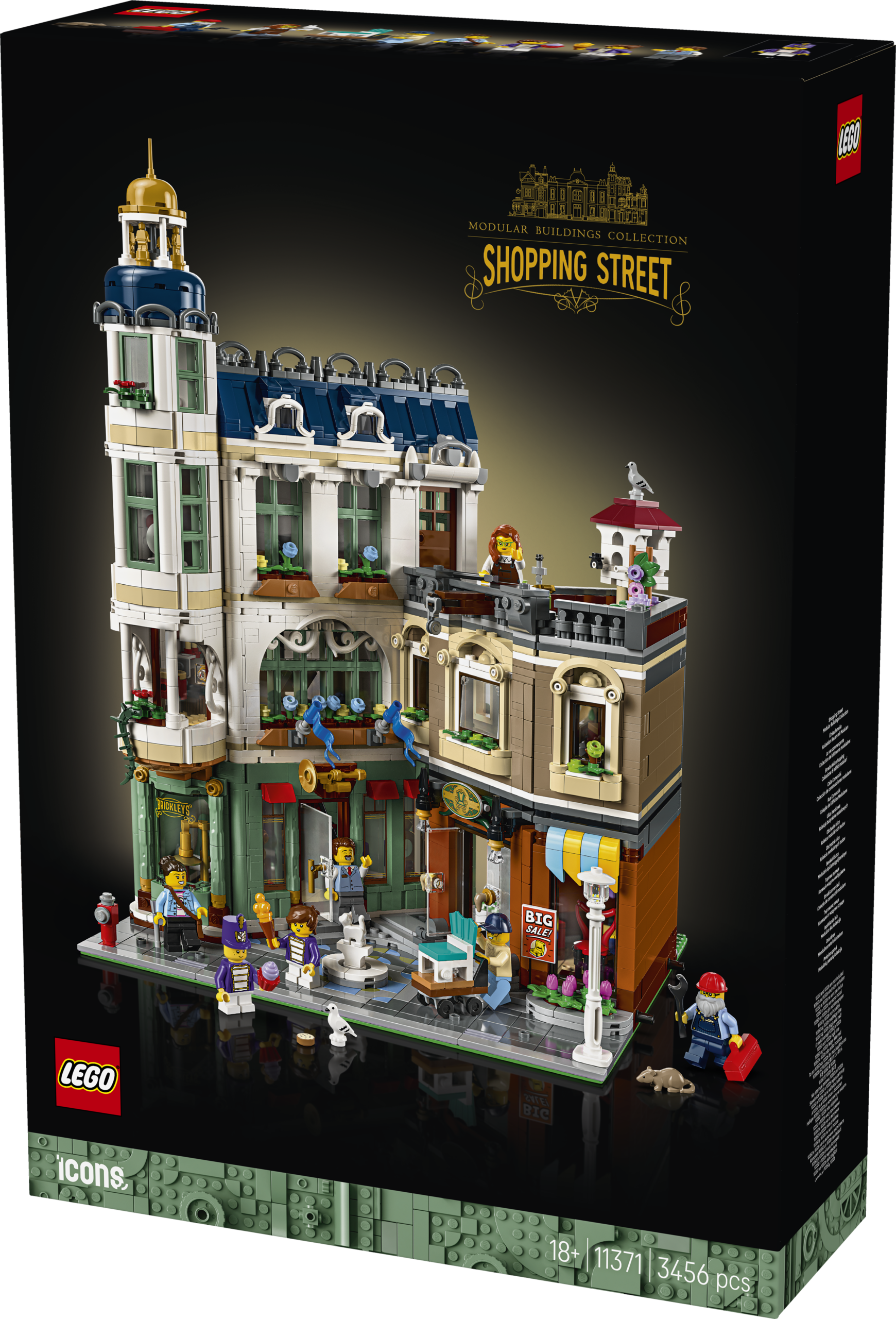 Zestaw konstrukcyjny dla dorosłych — zrelaksuj się przy satysfakcjonującym projekcie i zbuduj zestaw LEGO® Icons Ulica handlowa (11371) dla dorosłych