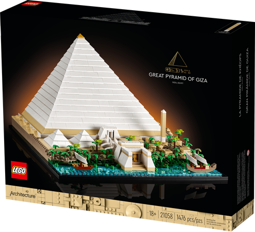 - Projekt konstrukcyjny dla dorosłych, który przeniesie Cię w czasie — model LEGO® Architecture 21058 przedstawia piramidę Cheopsa i jej okolicę tak, jak mogły wyglądać w starożytności