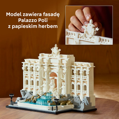 Wykorzystaj nowe techniki budowania, tworząc realistyczne detale fasady Palazzo Poli oraz kultowe rzeźby Okeanosa w rydwanie z muszli czy postacie symbolizujące Obfitość i Zdrowie w formie minifigurek. Są tu także hippokampy i trytony w wodzie, mała „fontanna zakochanych” z boku, a także tabliczka z napisem, która uzupełnia spektakularny model kolekcjonerski.
