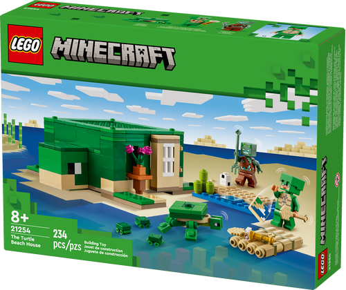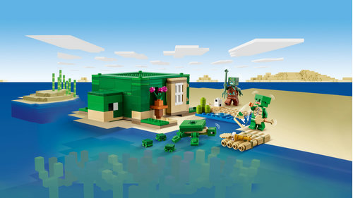 Gracze budują dom w kształcie żółwia rodem z gry Minecraft, z oknami, latarniami, drzwiami, łóżkiem, stołem, stołem warsztatowym i piecem. Podnoszony dach zapewnia łatwy dostęp do wnętrza. Na zewnątrz znajduje się plaża z trzciną cukrową, jajami żółwi i bambusową tratwą z wiosłami. Są tu także znane figurki i moby z Minecrafta: wojownik w skórce żółwia i hełmie, utopiec z trójzębem, żółw zajadający trawę morską i trzy małe żółwie. Akcesoria obejmują też mapę i lunetę. Miłośnicy akcji, kreatywnego budowania i opieki nad zwierzętami będą zachwyceni tą wszechstronną zabawką. Dodatkową cyfrową zabawę zapewnia aplikacja LEGO Builder, która umożliwia budowniczym powiększanie i obracanie modeli w 3D, a także śledzenie swoich postępów.