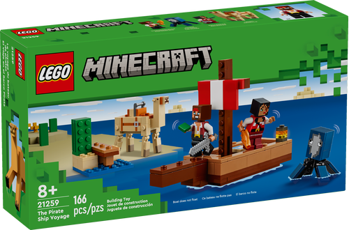 Zestawem LEGO® Minecraft™ Rejs statkiem pirackim (21259) z figurkami piratów można bawić się osobno lub połączyć go z innymi zestawami (sprzedawanymi osobno), aby zabawa była jeszcze lepsza. Piracki statek dla dzieci to świetny prezent dla graczy w Minecrafta oraz chłopców i dziewczynek w wieku od ośmiu lat, którzy lubią statki i budowanie z klocków.