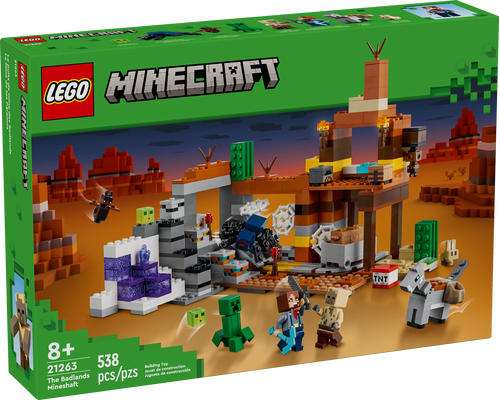 Kopalnia w Badlandach (21263) to praktyczny zestaw dla graczy w Minecrafta®. Ta wszechstronna zabawka konstrukcyjna dla dzieci zawiera popularne postacie mobów z gry Minecraft i stanowi świetny prezent dla chłopców i dziewczynek w wieku od ośmiu lat, którzy lubią zabawki związane z grą, przygody i budowanie z klocków.