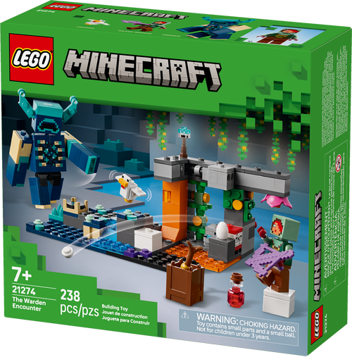 - Bitwa w bujnej jaskini z gry Minecraft® — kolekcjonerski zestaw LEGO® Spotkanie ze strażnikiem dla chłopców i dziewczynek w wieku od siedmiu lat zabiera dzieci do bujnej jaskini, w której zmierzą się z dużą figurką Strażnika z gry Minecraft