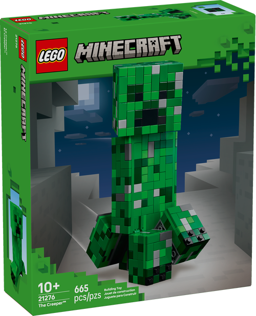 Ten zestaw z repliką Creepera z gry Minecraft ma ponad 21 cm wysokości. Postać ma cztery ruchome nogi i ruchomą głowę, która porusza się na boki oraz w górę i w dół. Przód głowy Creepera LEGO Minecraft można odczepić, odsłaniając wewnętrzny schowek, w którym kryje się pierwsza wersja Creepera i element TNT. Dodatkową cyfrową zabawę zapewnia intuicyjna aplikacja LEGO Builder, w której można powiększać i obracać modele w 3D oraz śledzić swoje postępy. Zestaw zawiera 665 elementów.