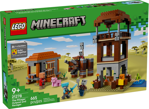 W zestawie znajdziesz cztery unikalne minifigurki LEGO® Minecraft®, w tym kapitana rozbójników, wojownika z toporem, obrońcę z diamentowym hełmem i osadnika. Główne zagrożenie stanowi duża figurka dewastatora z ruchomą głową i szczękami, gotowego taranować wszystko na swojej drodze.