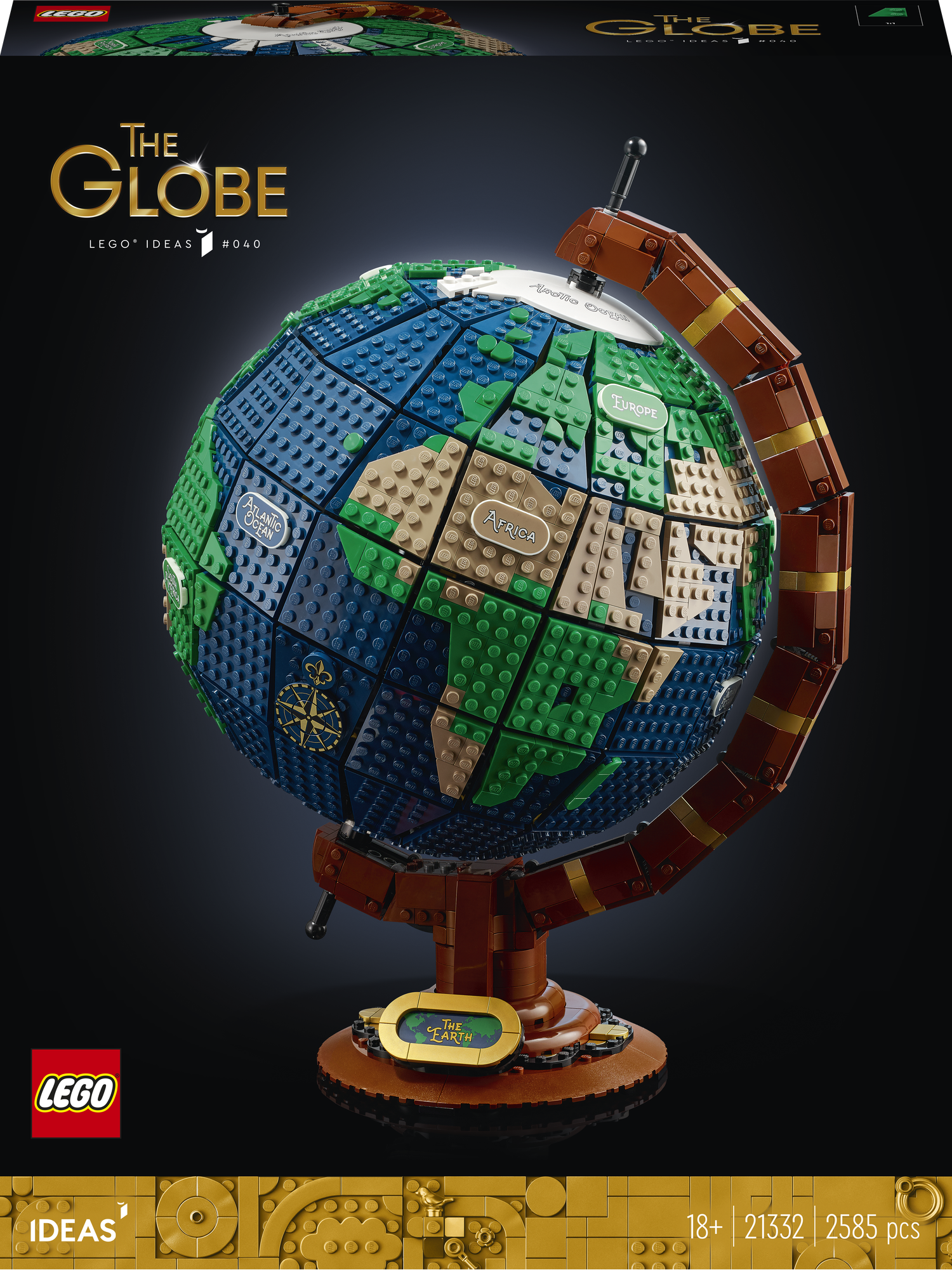 Gdzie chcesz się dzisiaj wybrać? Zaplanuj kolejną podróż podczas budowania modelu Globus (21332). Ten model kolekcjonerski stworzony przez fana i opracowany przez zespół LEGO® Ideas przedstawia obracający się globus w stylu retro zbudowany z elementów LEGO Technic. Jego powierzchnia ozdobiona jest świecącymi w ciemności płytkami z nazwami kontynentów i oceanów. Zbudować można też ikony ze statkiem i kompasem, a całość udekorować tabliczką z napisem „The Earth” (Ziemia). Ten czarujący model będzie niezwykłą ozdobą każdego domu lub biura.
