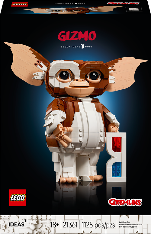 - Ruchoma figurka Gizmo — przywołaj wspomnienia uroczych scen z filmu Gremliny rozrabiają z 1984 roku dzięki tej zbudowanej z klocków LEGO® Ideas figurce mogwaia Gizmo