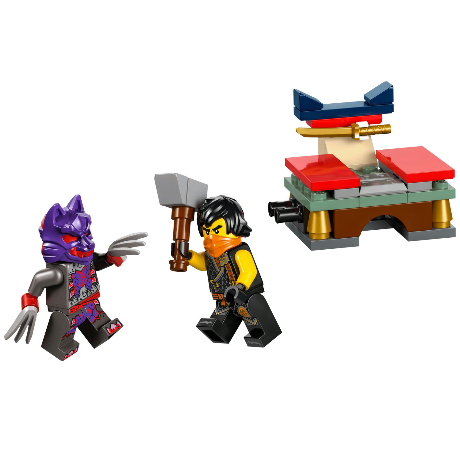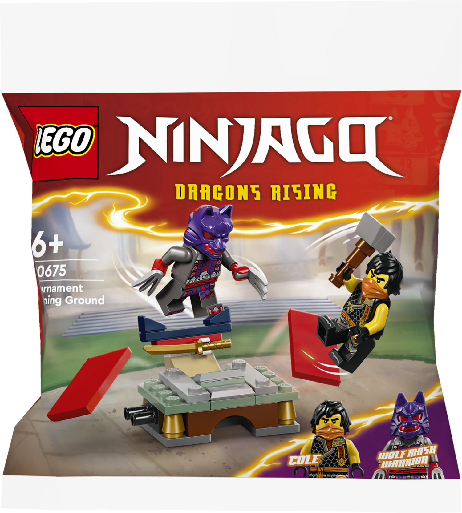Zestaw z ninja umożliwia dzieciom odgrywanie bitwy między Cole’em z kataną a wojownikiem wilczej maski ze szponami, którzy walczą o złoty kostur.