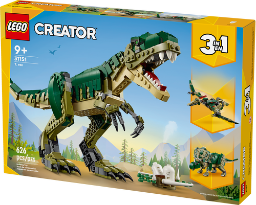 Chłopcy i dziewczynki w wieku od dziewięciu lat mogą przenieść się w czasie i bawić się w towarzystwie tyranozaura (31151). Figurka jest ruchoma, więc dzieci mogą ustawiać głowę, stopy, ogon, szczęki, nogi, ręce, a nawet palce u nóg i pięty! Zestaw zawiera także gniazdo z dwoma małymi jajami dinozaura, dzięki czemu będzie świetną ozdobą na półce lub szafce nocnej.