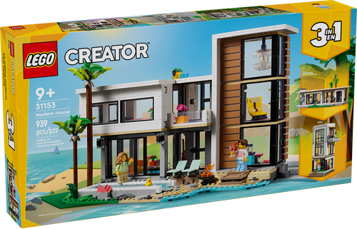 Dzięki ciekawemu zestawowi Nowoczesny dom (31153) chłopcy i dziewczynki w wieku od dziewięciu lat mogą odkrywać trzy różne domy LEGO®. Luksusowy dwupiętrowy dom na plaży położony jest w cieniu dwóch palm i obejmuje kuchnię, salon, czytelnię, sypialnię, łazienkę z prysznicem, balkon i nowoczesne meble, w tym fotel i żyrandol. Jest tam także basen, w którym dzieci mogą bawić się w odgrywanie ról.