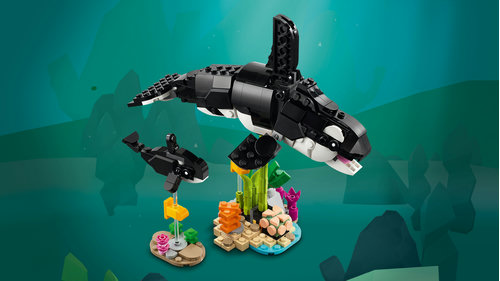 • Modele do zabawy i ozdoby — po ukończonej zabawie można umieścić figurki zwierząt LEGO® na półce lub stoliku nocnym. Rodzinę orek można ustawić na dwóch przezroczystych podstawkach