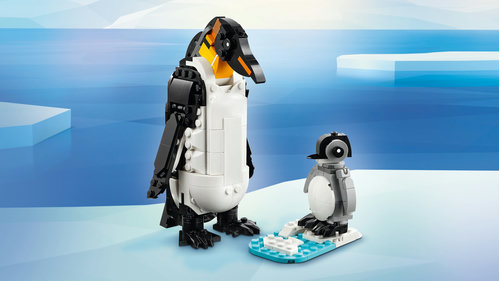 Dzieci mogą zbudować jeden z trzech modeli LEGO® z tego samego zestawu klocków: ruchomą pandę z młodym obok łodyg bambusa, ruchomą orkę z dzieckiem, które można ustawić na przezroczystych podstawkach lub ruchomego pingwina z pisklęciem na kawałku lodu i wody. Wszystkie trzy sceny sprawdzą się podczas zabawy i ustawiania na półce. Ten zestaw to świetny pomysł na prezent dla dzieci.