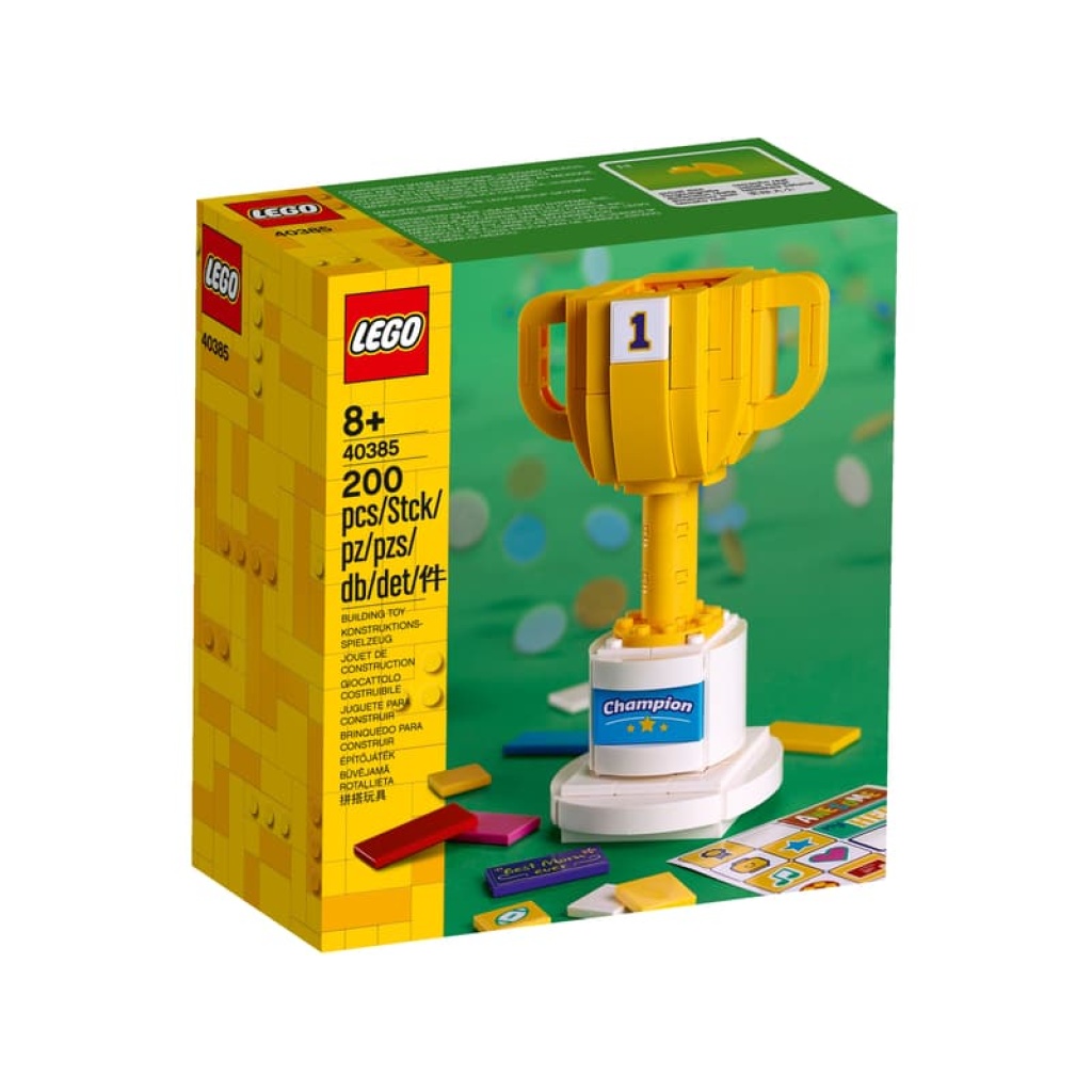 Zbuduj puchar z kolorowego zestawu LEGO® Iconic (40385), by świętować sukcesy lub podarować go wyjątkowej osobie. W zestawie znajdziesz także wybór dodatków oraz naklejki, które pozwalają ozdobić puchar stosownie do okazji. Zestaw zawiera różne naklejki — na jednych są podobizny ikon sportu, a na innych okolicznościowe hasła dla najlepszej mamy, najlepszego taty, przyjaciółki lub bohatera, a także gratulacje z okazji dobrze wykonanego zadania. Ta zabawka do zbudowania dla dzieci i fanów LEGO może być fajnym i pomysłowym prezentem urodzinowym lub nagrodą za wspaniałe osiągnięcie. Każdy obdarowany poczuje się jak zwycięzca!