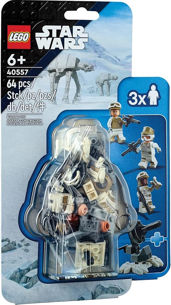 Dzięki zestawowi LEGO® Star Wars™ Obrona Hoth™ (40557) młodzi konstruktorzy mogą odgrywać własne bitwy na lodowej planecie. W komplecie są trzy minifigurki LEGO żołnierzy Rebelii z Hoth uzbrojonych w karabiny blasterowe, a także obrotowe działo laserowe do zbudowania (niestrzelające) i dwa działa na trójnogu. Ten łatwy w budowie zestaw doskonale nadaje się do zabawy w pojedynkę i w grupie. To również fantastyczny prezent dla kreatywnych dzieci w wieku od sześciu lat — niezależnie od tego, czy dopiero zaczynają przygodę z zestawami konstrukcyjnymi LEGO Star Wars, czy chcą rozbudować swoją kolekcję.