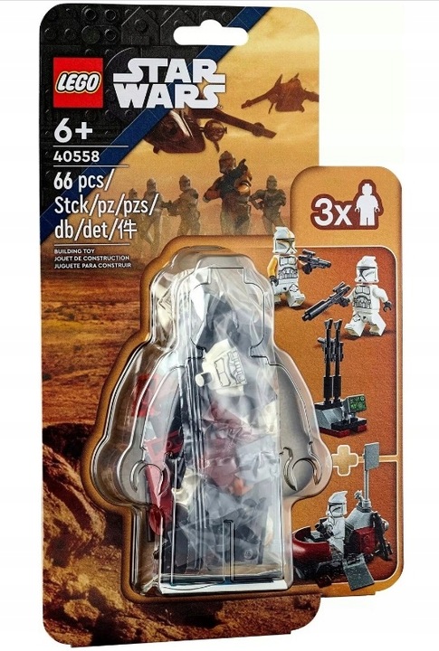 Dzięki zestawowi LEGO® Star Wars™ Stacja dowodzenia żołnierza oddziału klonów™ (40558) dzieci w wieku od sześciu lat mogą wykonywać misje jako żołnierze-klony. Na stacji dowodzenia są rozkładane rampy oraz stojak na broń z dwoma karabinami blasterowymi. Zestaw zawiera także trzy minifigurki LEGO z bronią do zabawy: dowódcę klonów i dwóch żołnierzy. Ten łatwy w budowie przenośny zestaw doskonale sprawdzi się jako prezent świąteczny, urodzinowy lub bez okazji dla kreatywnych dzieci, które chcą zacząć zbierać zestawy LEGO Star Wars lub powiększyć swoją kolekcję.