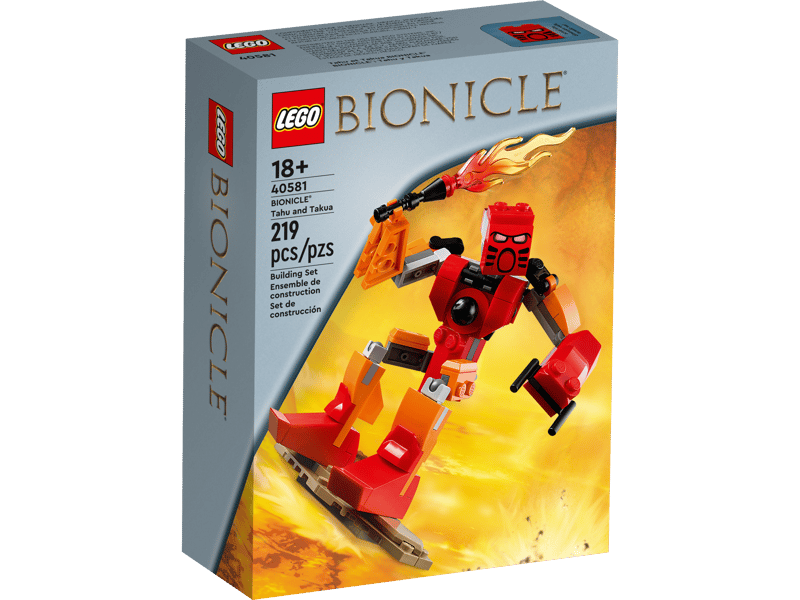 W 2001 roku Grupa LEGO wprowadziła nową serię, która podbiła serca fanów: BIONICLE®. Historia potężnych bohaterów z mocami żywiołów podbiła świat, stanowiąc inspirację również dla komiksów, książek i filmów. Teraz dwie najpopularniejsze postacie z serii powracają w zestawie LEGO® Icons BIONICLE – Tahu i Takua (40581). Ruchome figurki akcji mają ognisty miecz i wyrzutnię dysków. Zestaw zawiera także podstawkę do ekspozycji imitującą lawę, więc możesz ustawić figurki BIONICLE w domu lub biurze.
