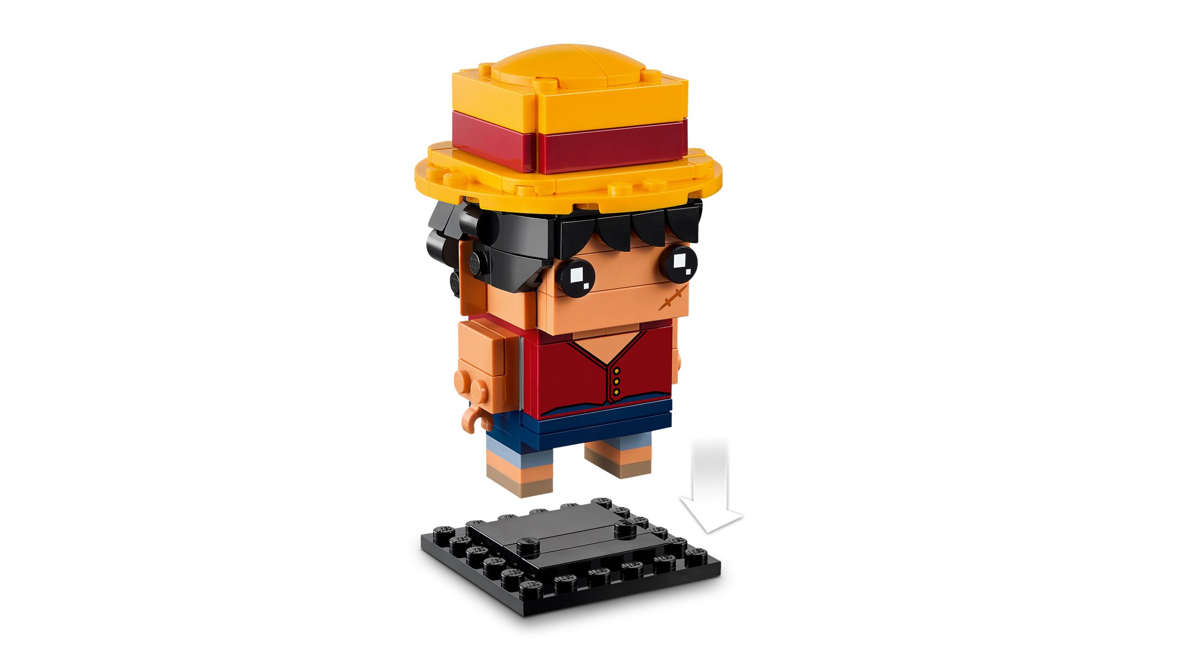 - Charakterystyczne detale – model LEGO® BrickHeadz™ przedstawia Monkey D. Luffy’ego w kultowym stroju i żółtym kapeluszu