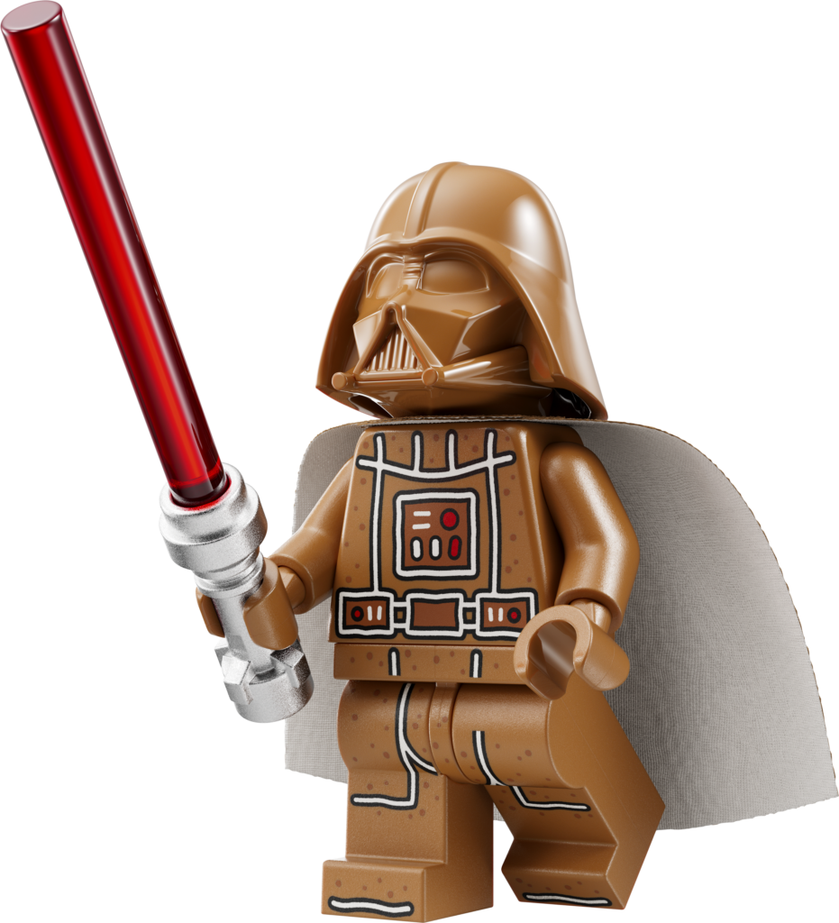 Piernikowa minifigurka LEGO® Dartha Vadera — zestaw zawiera specjalną minifigurkę LEGO Star Wars™ przedstawiającą piernikowego Dartha Vadera z cukrową laską i mieczem świetlnym