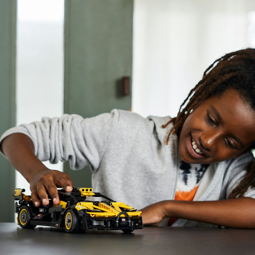 Zainspiruj dziewięciolatka lub starsze dziecko do zbudowania własnego modelu samochodu wyścigowego dzięki zestawowi LEGO® Technic Bolid Bugatti (42151). Dzieci mogą odtwarzać realistyczne detale, w tym silnik W16, układ kierowniczy i drzwi skrzydłowe. Wspaniały wygląd auta przykuwa uwagę swoją czarno-żółtą kolorystyką i realistycznymi naklejkami. Po zbudowaniu i obejrzeniu samochodu można z dumą ustawić model kolekcjonerski jako ozdobę.