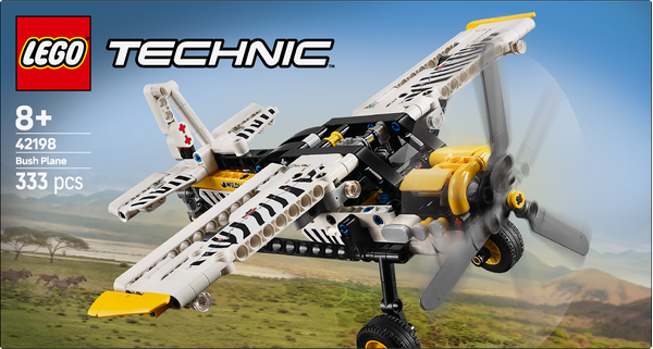 Fantazja ośmiolatków i starszych dzieci wzbije się na wyżyny podczas budowania i poznawania funkcji zestawu LEGO® Technic Samolot transportowy (42198). Naciśnij dźwignię, aby uruchomić obrotowe śmigło, wyreguluj lotki na skrzydłach bocznych i ogonie, a następnie otwórz pokrywę silnika, aby podziwiać czterocylindrowy silnik tłokowy. Pojazd zdobią paski zebry, zupełnie jak w prawdziwych samolotach transportowych w rezerwatach przyrody.