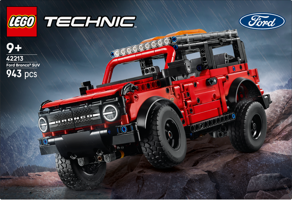 Zainspiruj dzieci do spełniania marzeń i niekończących się przygód w terenie dzięki zestawowi LEGO® Technic SUV Ford Bronco® (42213) dla chłopców i dziewczynek w wieku od dziewięciu lat. Zestaw zawiera realistyczne detale, w tym otwierane drzwi i zawieszenie z przednią osią i tylną osią napędową.
