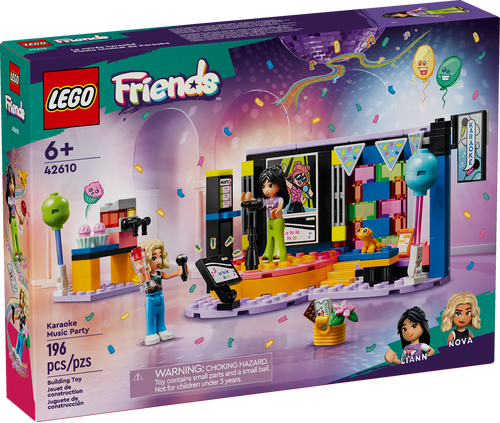 - Zorganizuj fajną imprezę z karaoke — zestaw LEGO® Friends Impreza z karaoke dla dzieci w wieku od sześciu lat zawiera dwie minilaleczki, figurkę gekona, obrotową scenę i mnóstwo akcesoriów