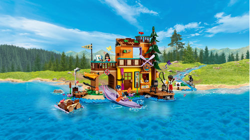 Ten zestaw LEGO Friends jest pełen akcesoriów umożliwiających opowiadanie historii. W obozie kempingowym jest sprzęt do wypożyczenia, lodówka z przekąskami, prysznic, apteczka, trofea i wiele innych elementów. Po dniu pełnym wrażeń przyjaciele mogą zrelaksować się w strefie spotkań lub zagrać w tenisa stołowego.