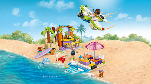 Ten zestaw zawiera wszystko, czego dzieci potrzebują, aby zbudować wodnosamolot z obracającym się śmigłem, strefę relaksu z deską surfingową i kawiarnię plażową z zamkami z piasku, siedziskami i lodami. Modele można przebudować na zabawkową motorówkę, strefę wypoczynkową i pizzerię z piecem do pizzy. Ponadto w zestawie są dwie minilaleczki oraz figurki psa i delfina.
