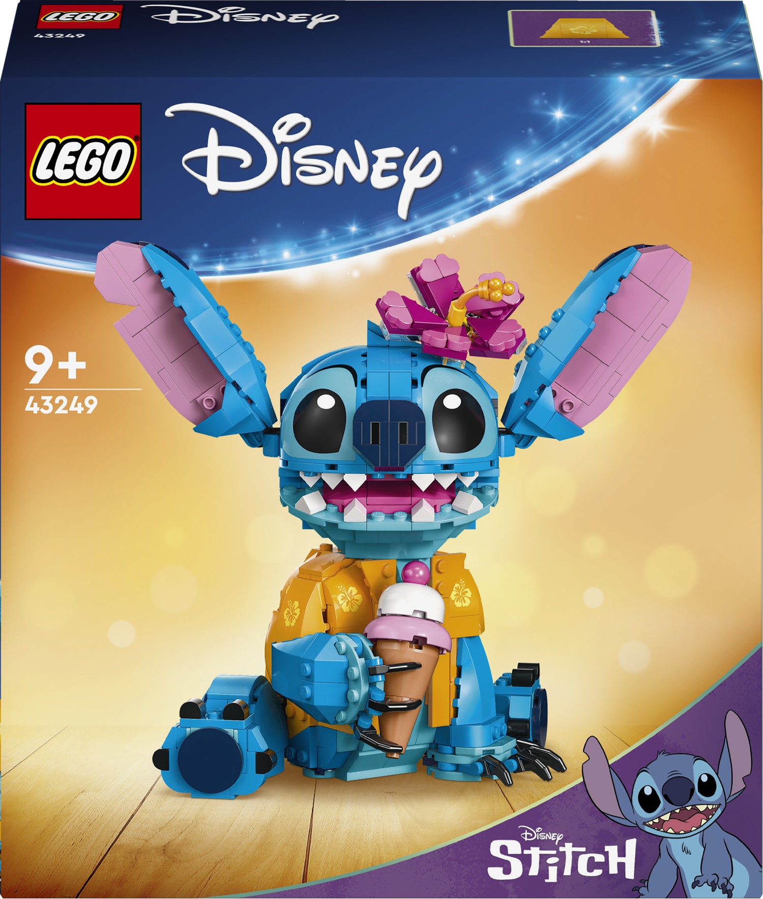 Zestaw do zabawy i ozdoby LEGO® ǀ Disney Stitch (43249) z postacią Stitcha przypadnie do gustu starszym dzieciom oraz fanom Lilo i Stitcha w wieku od dziewięciu lat. Psotny kosmita z kultowego filmu Disneya, ubrany w hawajską koszulę, ma ruchome uszy i obracaną głowę, rożek do lodów oraz kwiat do zbudowania, który można doczepić do postaci.