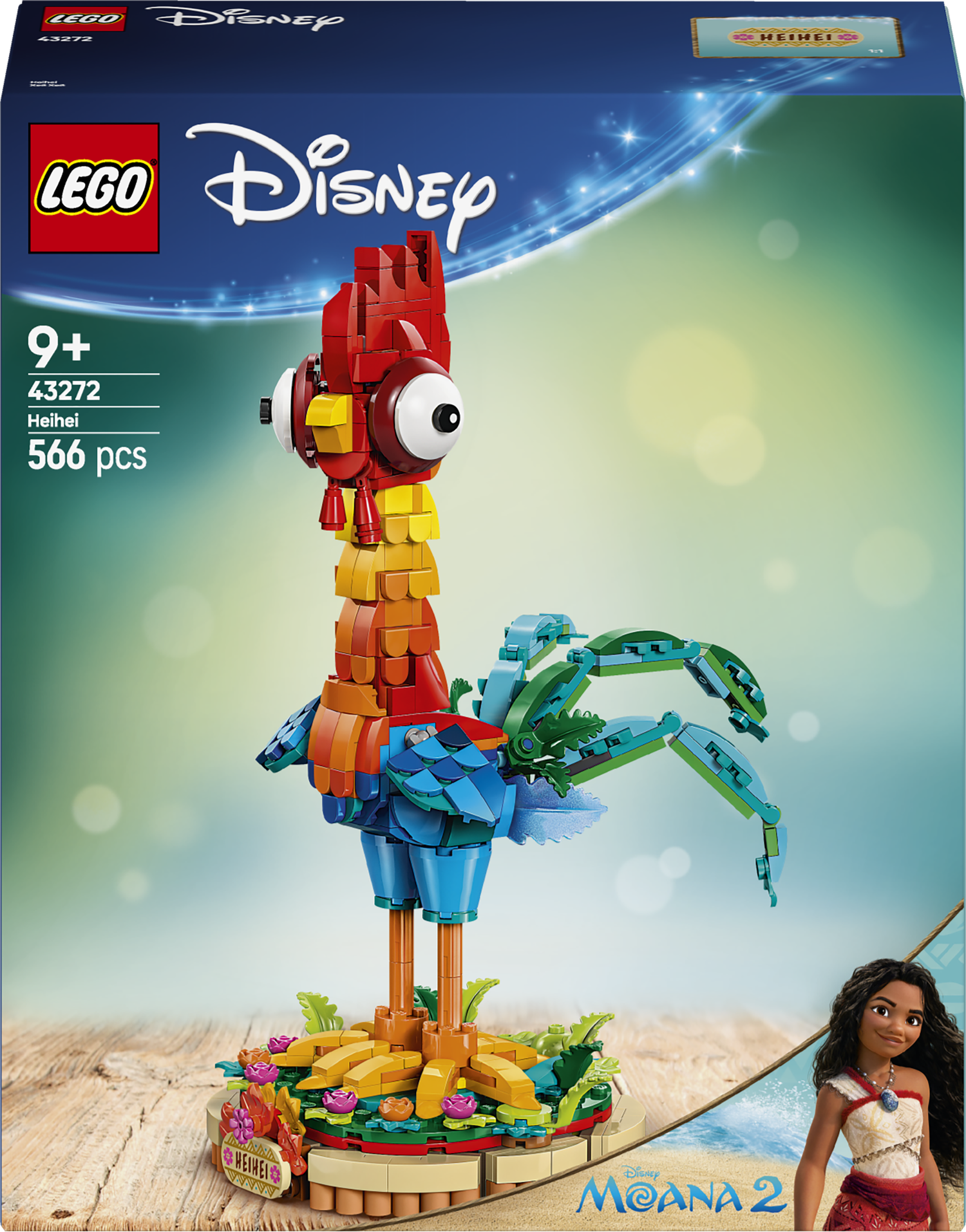 Ożyw przygody Vaiany i Heiheia z filmów Disneya Vaiana i Vaiana! Zestaw konstrukcyjny LEGO ǀ Disney Vaiana 2 zawiera ruchomą figurkę kurczaka Heiheia do zbudowania. Fani zwierząt LEGO i miłośnicy filmów będą się świetnie bawić, budując kolorowy model przyjaznego kurczaka z obracającą się głową, ruchomymi skrzydłami i piórami ogona. Tę kreatywną zabawkę dla 9-latki można ustawić na nogach lub podstawce z ozdobnymi kwiatami i tabliczką z napisem (w zestawie).