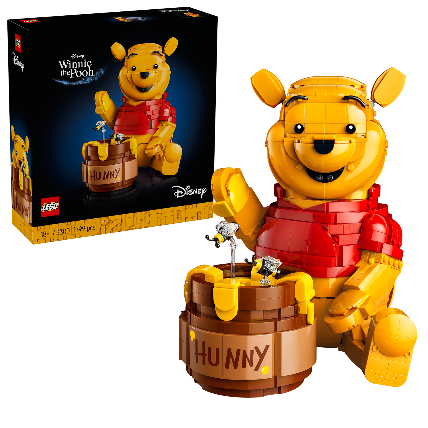 Figurka Kubusia Puchatka zbudowana z klocków zawiera również dwie niespodzianki. Słoik z miodkiem otwiera się, odsłaniając dwa pomieszczenia i dwie postacie LEGO ǀ Disney: minifigurkę Kubusia Puchatka i postać Kłapouchego.