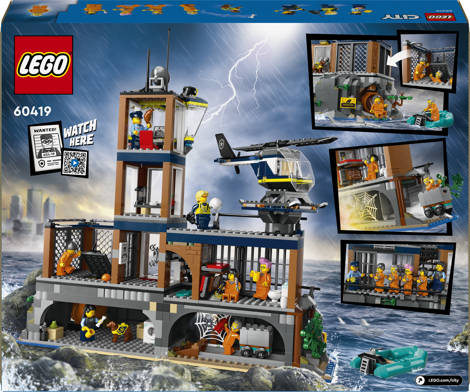 Więzienna Wyspa LEGO® City (60419) jest domem dla najbardziej znanych złodziejaszków w mieście, ale oni mają inne plany! Ten niesamowity zestaw zapewni ekscytujące przygody w więzieniu na klifie, które jest pełne rozmaitych funkcji. W zestawie znajduje się także helikopter, łódź policyjna, ponton, minifigurki trzech policjantów i czterech więźniów, a także figurki psa policyjnego i rekina.